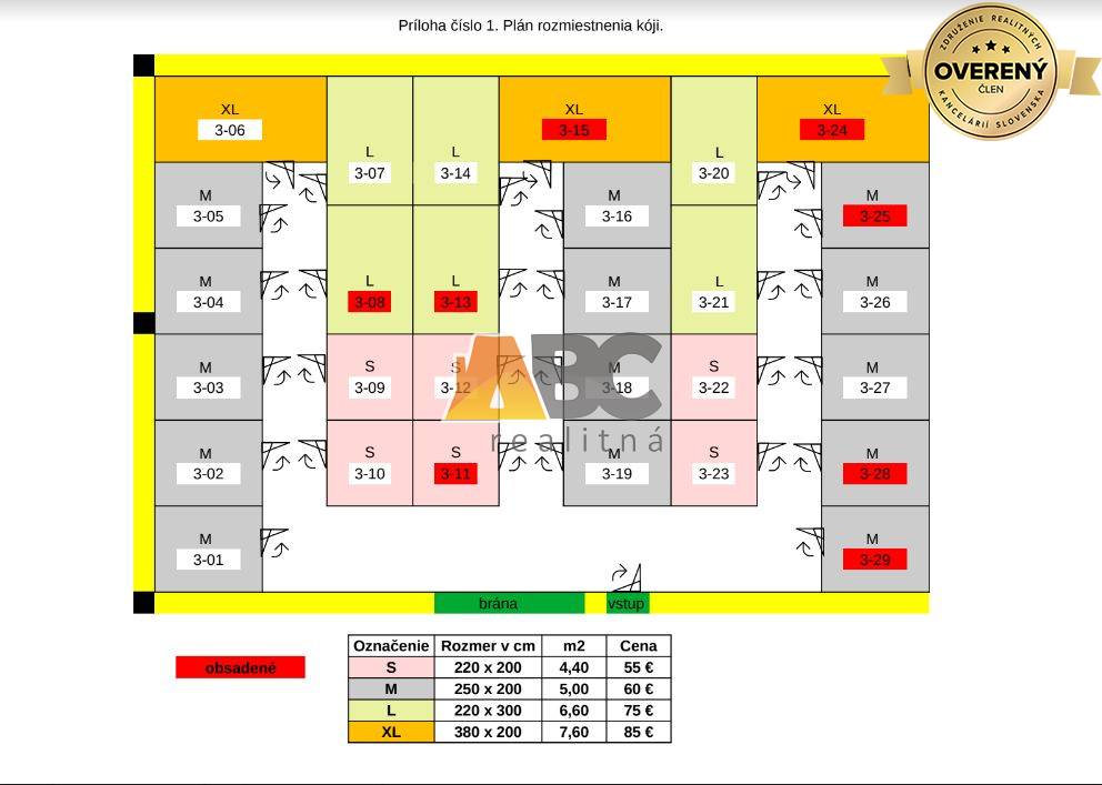 cez 2,7m vysokú rolovaciu bránu. Samostatné kóje sú vysoké 2,5m.